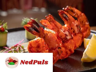 5- Stapel de Garnelenkörner in een groot deel van het vlees en de rest van de rest van de marinade.